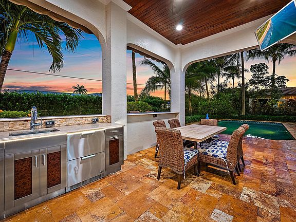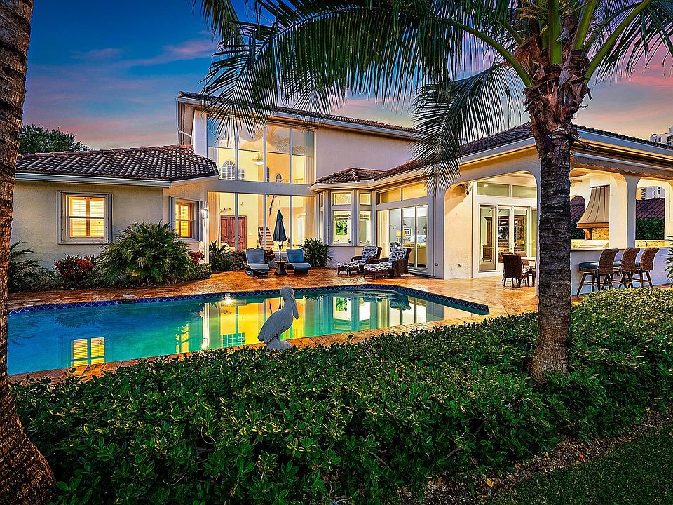 Paradise awaits at this stunning Mediterranean-style coastal residence located on the most desirable street on Singer Island. This prime location that is a short walk to the beautiful Singer Island beaches with easy access to top rated restaurants, shopping, boating, golf and more. Custom built in 2002, this gorgeous 4 BD + 3 BA concrete block home was impeccably constructed with the finest design, craftsmanship, & functionality in mind. Enter this elegantly designed home and marvel at the soaring ceilings and abundance of natural light pouring in. Be prepared to entertain in this newly renovated (2022) dream kitchen that features Viking appliances, 48'' fridge, 5 burner gas stove, wine fridge, quartz countertops, over cabinet lighting, under cabinet lighting, custom cabinets with Rev-a-Shelf organization to maximize storage . Step outside to your private outdoor oasis featuring... ... a covered patio with pecky cypress ceilings, first-class summer kitchen, an outdoor tv, an electric awning, an electric heated pool, all surrounded by lush tropical landscaping. The private master suite is the only bedroom upstairs which features 2 walk-in closets and a large master bath. The other 3 bedrooms are located on the main level. Other highlights of the home include a walk-in laundry room, partial impact, 2018 HVACs (2018) & (2023), pool heater (2023), trey ceilings, beautiful garage organization with epoxy floors, built-in speakers, a large storage shed and much, much more.