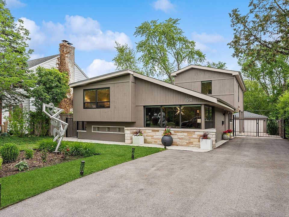 Right size perfection could be yours! If you appreciate quality workmanship, lovely finishes and want "new" that isn't cookie cutter, check out this beautiful home in the desirable Sherwood Forest neighborhood of Highland Park! The home was thoughtfully renovated in 2020-21 and has a very flexible floor plan, tons of sunlight and openness. It's hassle - free living at its best. Lovely large and private primary suite sits on the top floor of this split level home. Each floor is separated by just a handful of steps. There are two bedrooms and one bath on the 2nd level. One has a walk-in closet that used to be another bedroom. Lower level has 4th bedroom/office/workout space. The main level is the perfect flow especially if one loves to entertain or appreciates the separation of living spaces. Embrace the sleek and stylish kitchen with Quartz counters and custom cabinetry. Live in the front and back rooms any way you like. Large front room overlooking a perennial garden is the current large dining room but could also be the main family room space - big enough for a large sectional, TV and more. The back of the house is bathed in sunlight and offers lovely views of another perennial garden and private patio. There are sliding doors that open to a patio and a nice covered outdoor space on the other side. Use this space as family room/eating area or sunroom. Totally flexible! There are lovely tidy yard spaces with beautiful gardens in front and back. Plenty of parking with a long driveway which leads to a 2-car garage which is equipped for an electric car. Fenced yard including a gate along the driveway. This location sits between Deerfield and Highland Park shopping and restaurants and provides easy access to 41! Several nearby parks! Don't miss the opportunity for move-in ready at its finest!