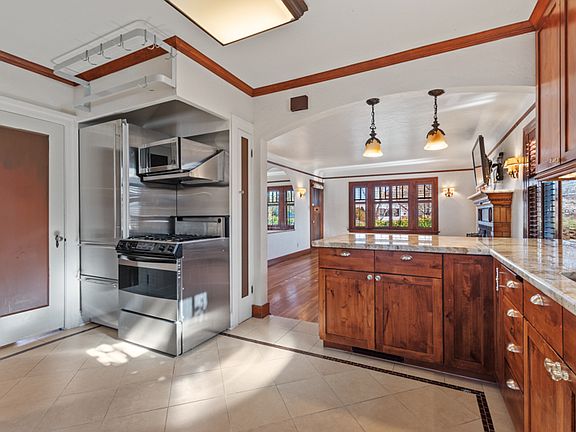 Charming Old Southwest Reno brick bungalow. Gorgeous hardwood floors throughout the main floor living as well as updated kitchen and bathrooms. Two bedrooms and bathroom are located on the main floor with the primary suite and en-suite "spa-like" bath located upstairs. Primary suite is open to main floor via stairwell and build in desk will remain. Finished basement is included in the square footage. Basement has the washer, dryer and laundry sink along with a pool table that stay. The garage portion of the basement has a work table and work sink.