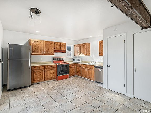 Inside, the spacious living room with gas fireplace hookups and newer luxury vinyl flooring creates a warm and inviting atmosphere. The kitchen and dining area open directly to the courtyard through sliding glass doors, offering seamless indoor-outdoor living and entertaining potential. While the kitchen retains its original charm, it’s ready for your personal updates. The main floor includes a half bath and a laundry closet with a washer and dryer for added convenience. The central staircase, accented with wood and bathed in natural light from a skylight, brightens the space and is perfect for plant enthusiasts. Upstairs, the oversized primary bedroom and large secondary bedroom—both suitable for king-sized beds—offer ample space to relax. The full bathroom includes a spacious garden tub, perfect for unwinding. Additional features include a one-car garage, a reserved parking space, and low-maintenance living thanks to an active HOA that handles the roof and exterior. Conveniently located near shopping, dining, parks, and the High Line Canal, this home is ideal for outdoor enthusiasts. Though some updates are needed, it is priced accordingly and this wonderful townhome is full of potential. Schedule a tour today and imagine making it your own!