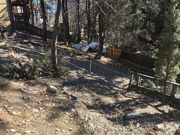 Edison pole caught fire & burned down the house on these 2 combined lots with a total of 5,440 SF. WATER METER & sewer line are there & included in Purchase Price. The original foundation has been removed on these lots. Short walk to Rimforest. Paved & county maintained road. Thanks for looking.