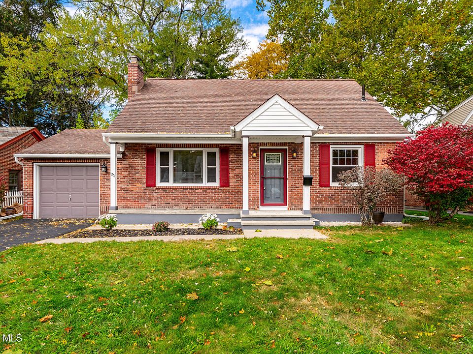 Charming brick cape featuring 3 bedrooms & 1 full bath. The living room welcomes you with a cozy fireplace & bright picture window, a separate dining room adds the perfect flow for entertaining. Beautiful hardwood floors run throughout the home. Updated kitchen with modern appliances & tile floor. The second floor offers a large bedroom w/ walk-in closet & add'l closet, nook for home office & an add'l cedar closet plus walk-in attic storage. Additional highlights include an attached garage, a covered back porch, & a private backyard ideal for outdoor enjoyment. Move-in ready & well-maintained.