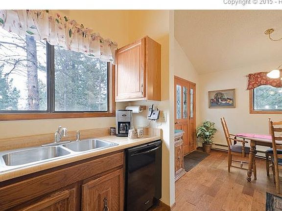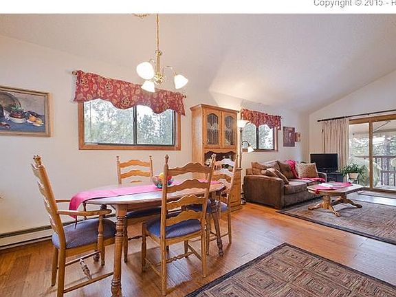 Mountain-style living on a large treed lot but still very close to town! Upon walking into this updated raised ranch home you will notice beautiful hardwood floors and an open floor plan with vaulted ceilings. The eat-in kitchen has lots of cabinet and counter-space and has updated appliances. The living room has a cozy fireplace, large windows showcasing the beautiful private setting, and walks out to the enormous deck which stretches the entire length of the house. Also on the main level is a big master suite with attached bath and large closet. An additional large bedroom is also located on the main level along with another full bathroom that has been updated with beautiful tile shower surround. On the lower level is a cozy family room, 3rd bedroom, and access to the mudroom and garage (ground level access). Enjoy the gorgeous mountain setting and stunning landscaping with 2 patios in addition to the full-sized deck (which also has an electronic controlled awning). The huge back yard is fully fenced. The home has been well-maintained and has two types of heating (baseboard and forced air from a new furnace) making it incredibly efficient to heat in the winter. It has tons of closet space in nearly every room, and laundry facilities are conveniently located on the main level.