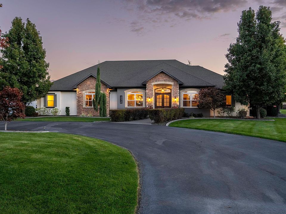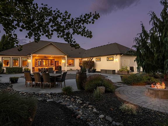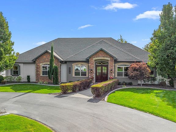 MLS# 279651 Welcome to 12310 Ricky Ct, a luxurious custom estate nestled on a serene 1-acre lot minutes from Columbia River. From the moment you arrive, the circular driveway and impeccable landscaping create an unforgettable first impression. Step inside to experience a flowing, light-filled interior featuring soaring ceilings, wood-wrapped windows, hand-scraped hickory hardwood floors, and exquisite custom cabinetry. The great room, with its floor-to-ceiling stone fireplace, boasts oversized picture windows that frame the lush backyard oasis. Built-in shelving and cabinetry provide both elegance and functionality. The chic chef’s kitchen is a masterpiece of design and craftsmanship. Gorgeous knotty Alder cabinets pair perfectly with the granite countertops and travertine backsplash, while a custom wood range hood and high-end stainless-steel appliances elevate the space. The 5-burner gas cooktop, double wall ovens, and oversized eat-in island make this kitchen both beautiful and practical. An adjacent walk-in pantry offers generous storage and countertop space. The dining nook provides seamless access to the patio for alfresco meals, and the formal dining room is ideal for hosting elegant gatherings. A set of French doors opens to a versatile office or den, offering a quiet space for work or relaxation. The primary suite is your personal sanctuary, a sunlit haven with private patio access. The luxurious ensuite bath features dual vanities with granite countertops, a travertine tile soaking tub, a walk-in tile shower, and a designer walk-in closet system. Two additional bedrooms, each with ensuite baths and walk-in closets, provide the perfect accommodations for visitors or in-laws. Outside, the meticulously landscaped backyard is a private retreat. Relax on the covered patio, enjoy the heated pool, or gather around the firepit for evenings under the stars. The property also features a charming berry patch, an outdoor shower, and bath for added convenience. With an extended driveway, open RV parking with electrical hookup, and a spacious 4.5-car finished garage, this home effortlessly combines luxury with practicality. This exceptional residence offers a rare opportunity to enjoy luxurious living in one of West Pasco’s most desirable neighborhoods. Schedule a private tour today and experience this exclusive property for yourself.