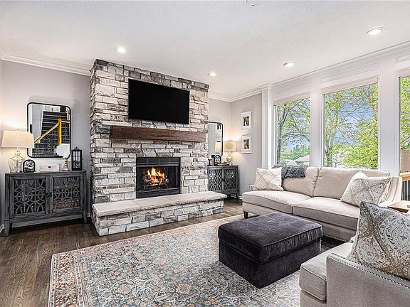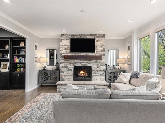 OPEN HOUSE Saturday, 5/17 - 12:00 - 3:00 pm. Welcome to this beautifully updated and meticulously well-maintained home that blends modern comfort with timeless charm. Featuring 4 bedrooms, 3 and a half baths, an open floor plan with finished basement, this home is perfect for families and anyone seeking a turnkey property. Step inside to find a bright and open layout with stylish finishes throughout. The main floor boasts a spacious living room with large windows for natural light, a cozy fireplace, and an open-concept kitchen with stainless steel appliances, and granite countertops. Upstairs, the generous primary suite includes a walk-in closet and newly renovated primary bathroom with heated tile and custom lighting. Retreat downstairs to the finished daylight basement with beverage bar for entertaining, 5th non-conforming bedroom & full bath, family room, utility room and cedar closet. Enjoy peace of mind with recent updates including a 2 year-old roof, many new windows & paint, digital thermostat and automated window coverings. The private backyard is picturesque with a large, lighted deck, cozy patio, shade trees and lush landscaping with sprinkler system. Apart from this, the neighborhood pool and clubhouse are just down the street, and you’re just minutes away from KU Edwards campus, Sykes Lady Golf Course with access to walking trails, local amenities, shopping, dining, and top-rated schools. This beautiful cul-de-sac property has everything you need to make it your home.