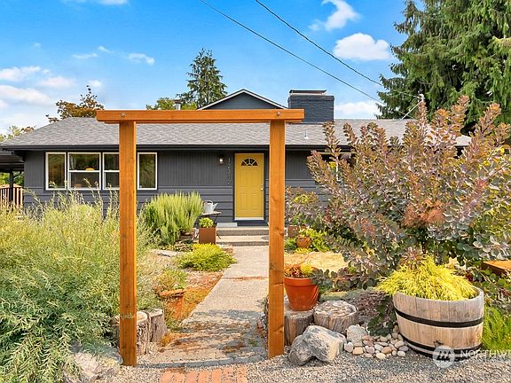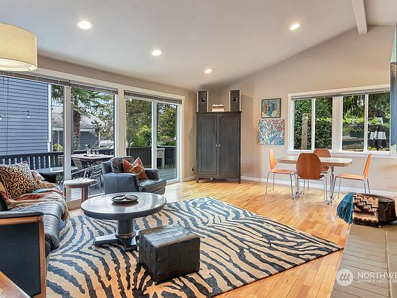 Smart and crisp light-filled MidCenturyModern in excellent neighborhd w/ peek-a-boo Lk WA views! Built-to-last construction loaded w/ recent hi-end upgrades (many 2022-23), perfect for those who love to entertain. Vibrant open design lives large: Vaulted ceilings, brilliant natural light from expertly placed glass windows & drs, gleaming hardwds, granite & tile kitch w/ barely-unwrapped new appliances, new lighting, quality ext. paint, beautifully landscaped outdoor living spaces with a nod to gracefully hosting large gatherings. Finishd walk-out basmt has 2bedrms (1 non-conforming egress windw), recrm, 2nd firplc, new 3/4bath, ezy ADU. Remarkable gardens/patios/decks. Ideal location in the heart of SE Seattle-Renton compass. Just move in!