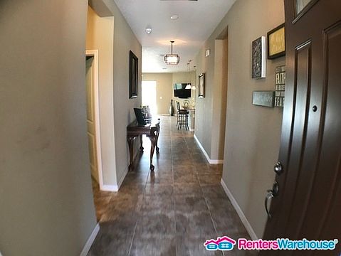 This comfortable open plan executive 3 bedroom/ 2 bath home includes a home office. The kitchen boasts beautiful dark wood cabinets with light granite countertops, a massive island/breakfast bar and stainless appliances. The kitchen, dining and living area are one large common space conducive to entertaining. The living area opens to the lanai and heated, saltwater pool which is controlled by a small console inside. The master bedroom is at the back of the house and the other 2 bedrooms are in front. The master includes a large walk-in closet and ensuite bathroom with double sinks, soaking tub and shower. The 2 front bedrooms each have a large closet spaces and share a bathroom with double sinks. The office is off the main hallway and is flexible in its use as an office, craft room or separate living area. Utility room comes equipped with large capacity machines and there is a 2 car garage. Pet friendly w/restrictions. Lawn and Pool maintenance included in the price.