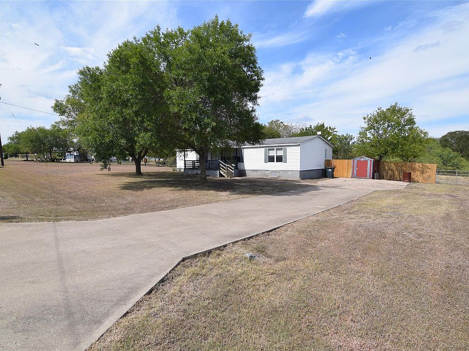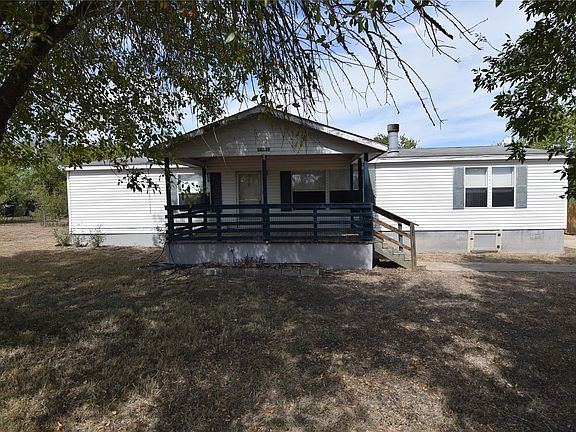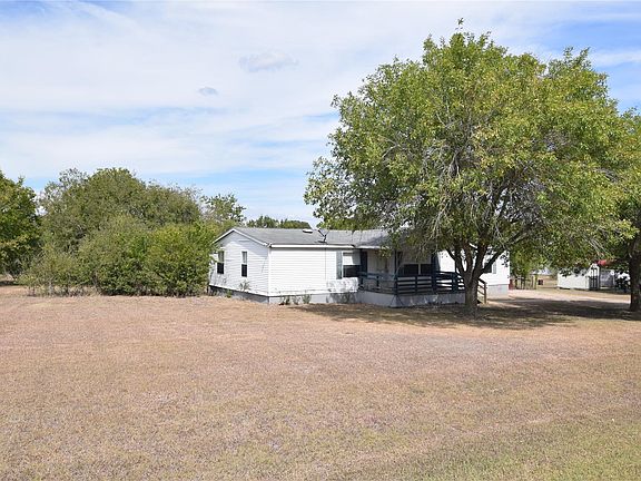 Double wide with .75 acres. Large front porch. Trees. 3 bed + 2 full bath + flex room (office or game room or 2nd dining). Large country kitchen. Island. Refrigerator. Dishwasher & Oven. Storage shed. Low down payment FHA loan possible.