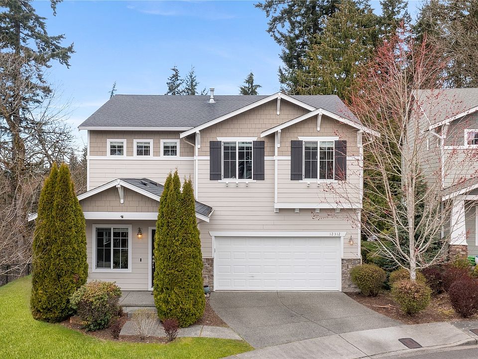 Gorgeous and spacious two-story home in ideal location in the coveted community of Woodridge at Northcreek! Tucked in the very back of the community, at the end of a cul de sac, just steps from the neighborhood park & with a ground-floor entry, you'll LOVE the stunning, open-concept kitchen w/ custom island & brand new counters / backsplash! Through the slider, you'll find an expansive Trex deck w/ privacy built-in all around the home - entertain all summer long! Upstairs is a large loft area, 2 well-appointed bedrooms, main bath & through French doors you'll enter the Primary Suite... Complete w/ vaulted ceilings, WIC, & 5-pc ensuite. Brand new carpet up, luxury vinyl down & paint throughout! Excellent neighborhood and ideal area!