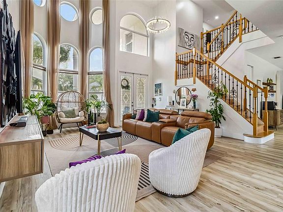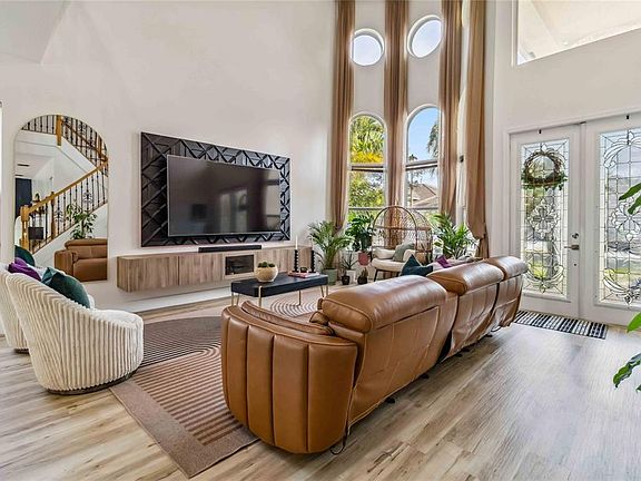 This is THE ONE! Step into a world of elegance, where dramatic vaulted ceilings and a radiant crystal quartz chandelier set the tone for nearly 2,600 sq ft of high-end living. This 4-bedroom, 2.5 bath masterpiece features designer touches throughout—Miele appliances, waterproof vinyl flooring, & exquisite lighting. Entertain with ease in open-concept spaces or unwind by the saltwater pool with partial lake view. The primary suite is a private retreat with a 2-person Jacuzzi, chroma light therapy, dual shower heads, & smart toilet. Enjoy impact windows & doors, smart W/D, 2023 A/C, 2025 water heater, fully permitted loft conversion, and a gated community. This is more than a home—it’s a lifestyle of luxury, comfort, and style all in one. Your piece of South Florida paradise is waiting!