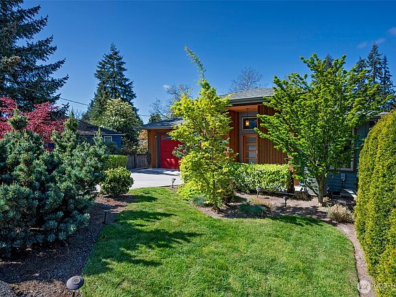This elegant, high-quality, level-entry home exudes modern natural warmth and will take your breath away! Open concept living area includes high-end kitchen with impressive upgrades, beautiful wood beams, a lovely stone fireplace and a deck overlooking the lush yard. Main floor Primary suite has custom closets and W/D hookup. Generous office has custom cabinets and built-in desks. Downstairs, there are two bedrooms plus a rec room, laundry room and a sliding door to the yard and hot tub. The highly functional garage has custom cabinets, a workbench, space for all the gear and dog run access. Excellent DADU/ADU potential. Built in 2015 and meticulously maintained, this home feels new. An in-city retreat with everything ready to go!