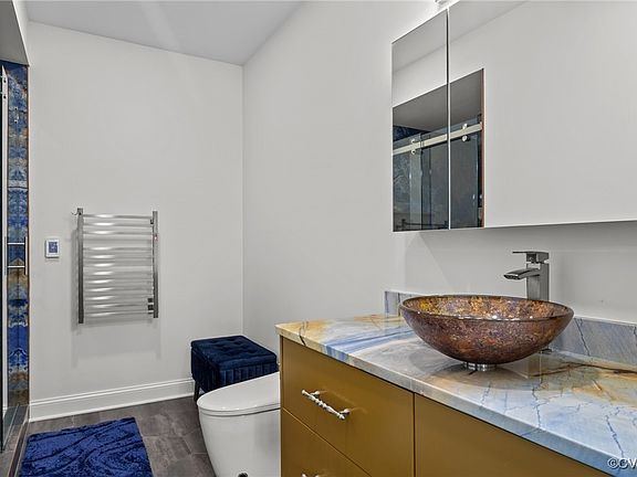 Inside, the smart lighting and security systems offer seamless modern living. The family room impresses with dual saltwater aquariums, a 72-inch linear gas fireplace, 14 ft pocket door going to the backyard, LED custom cabinetry, and surround sound wiring. The gourmet kitchen is a chef’s dream, featuring Sub-Zero and Wolf appliances, a 10x14 Cambria island, pot filler, drawer microwave, and refrigerated water filter. Additional highlights include an elevator servicing all three floors with custom tile work and medallion, an elegant dining room with a millwork tray ceiling and crystal chandelier, and a coffered-ceiling office. California Closets designed the large walk-in pantry and mudroom storage.Primary suites on both the main and upper levels offer heated floors, EUROTO smart toilets, towel warmers, quartz vanities, and spa-style showers. Upstairs, each additional bedroom includes en-suite baths and custom closets.