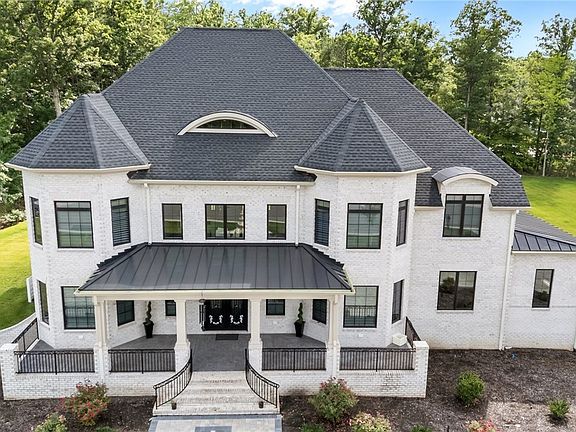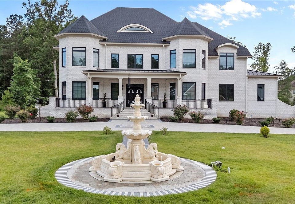 Step into luxury living in the prestigious Henley Subdivision with this stunning 6-bedroom, 5.1-bath estate boasting a 3-car garage and unmatched craftsmanship throughout. The grand entrance features a custom double cast-iron front door with an integrated glass interior door, opening into a dramatic foyer adorned with a 9-foot crystal chandelier, a custom-tiled medallion floor, and dual decorative iron-railed staircases. Soaring 19-foot ceilings provide breathtaking views from the upper floors into the foyer and family room.