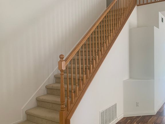 The house is super clean, hardwood floor on first floor, carpet for all bedrooms. Wood blinds on all windows.