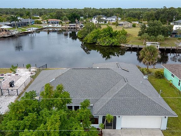 360 TOUR**TURNKEY CONTEMPORARY FURNISHED**5 MINUTES OUT TO MYAKKA RIVER**WIDE OPEN CANAL VIEW** WATERFRONT**80 FOOT CONCRETE SEAWALL** 3 Bed/2 FULL Bath/2 Car Garage/Screened-In LANAI*HIGH ELEVATION* (never flooded), well-maintained, "one-owner" ideal home amidst wildlife! Other Highlights include: 2022 Contemporary Furnishings, 2022 Plank tile flooring, 3 Skylights, 3 sliding doors, High Ceilings, Large Screened-In Lanai, Guest Bathroom with door to lanai, Utility Room with Sink, Central Vacuum, storage space and only 5 minutes to 776/El Jobean. Enjoy the manatees and wild birds from your backyard screened-in lanai with vacant lots in front across the canal and behind the home! The screened-in breezeway opens into a wide hallway and bright Living/Dining combo with high ceiling & electric heat generating fireplace, which is the perfect place to entertain friends and family. The wide entrance hallway leads to the storage and pantry closets and opens to the kitchen and high ceiling, family room with skylight where you can eat at the breakfast bar or dinette next to the lanai sliding door. The Comfortable and Bright Primary bedroom has a sliding door to Lanai, 2 walk-in closets, pocket door to the en suite bath with dual sinks, separate shower and skylight. The 2 Guest bedrooms are in the back right corner of the home and both have walk-in closets, ceiling fans and bright windows. The utility room has a sink and plenty of room for extra cabinets and opens to the 2 car garage with ladder to attic space, treated floor and side door. The Gulf Cove community has an association: the POGC (Property Owners Gulf Cove), which owns two private waterfront recreational properties that encompass a little over 5 acres on the Myakka River. These waterfront amenities are available to Gulf Cove property owners who support POGC through annual membership dues and/or ramp fees. The POGC waterfront park includes a pavilion, picnic tables, benches along the river, and playground area. The POGC ramp provides direct boating access to Charlotte Harbor and the Gulf of America as well as boat trailer parking. Close to Sandy Beach Myakka Park, Myakka State Forest, Golf Courses, 30 minutes to Boca Grand Beach, Shopping and Dining - this is the perfect spot to enjoy the Florida lifestyle!