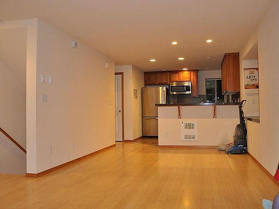 Beautiful bright townhome which was built in 2008. Surrounded by restaurants, grocery stores, bank, library and bus stops. Super convenient location. 15 minutes drive and 30 minutes bus to downtown. This is an end unit with three levels. First floor has one car garage and a small room which leads to a small private backyard. The hot water tank is in the closet so it might be a little bit noisy when using hot water but it is perfect as a office. Second floor is the living and dining room with full kitchen. The third floor has two bedrooms, two full baths and stacked washer and dryer. Master bath is inside master room. utilities. Last month rent plus $1000 security deposit due at signing. No pet. No smoking. No big parties. Tenants need to have minimum credit scores of 700 and gross income needs to be higher than 3 times monthly rent. $40 nonrefundable application fee per adult over 18. Please email me with introduction about yourself and targeted move in date if interested.