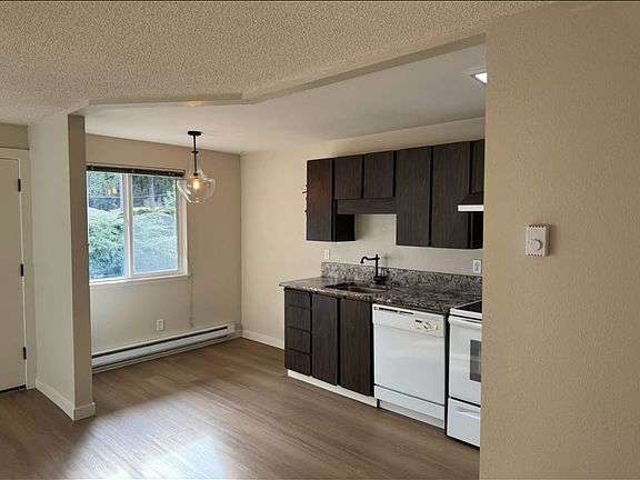 Newly remodeled clean 600 sf 1 bedroom apartment with a full bathroom. Close to shopping. On site laundry room. Water, sewer and garbage included. Uncovered free parking located just outside of this end unit. No stairs. 8 units total. Located in a nice quiet neighborhood.