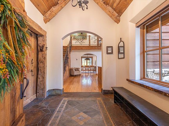 From the moment you walk in, you’ll fall in love with the refined craftsmanship and mountain elegance of this timeless Tahoe Donner home. Sierra Antique stone flooring welcomes you into a thoughtfully designed space where quality and comfort meet. Every detail, from 150-year-old reclaimed barn wood to custom ironwork and solid Monterey Cypress 1 5/8" thick doors, speaks to the superior craftsmanship found throughout. The expansive great room features soaring vaulted ceilings, a floor-to-ceiling stone fireplace, wide-plank cypress flooring, and custom wood sash windows that frame lovely views of the 5th fairway. The chef’s kitchen is the heart of the home, showcasing fossilized limestone and granite countertops, including a 9-foot live-edge island, Sub-Zero refrigerator, six-burner Dacor range, Zephyr wine fridge, Dacor oven, two Fischer Paykel dishwashers, and custom Knotty Alder cabinetry. A breakfast nook, pantry, built-in desk, and direct access to a Sierra Antique granite patio make this kitchen as functional as it is beautiful. Step outside to your private backyard oasis with a hot tub, gas fire pit, and landscaping, all set against the scenic backdrop of the 5th fairway. Inside, the intimate dining room features its own fireplace, creating a cozy yet elevated entertaining space. The adjacent den, with another striking stone fireplace, is ideal for movie nights or relaxing with family and friends. The main level also includes a guest bedroom, full bathroom, laundry room, and a two-car garage with epoxy floors. Upstairs, custom iron railings lead to a cozy loft and three additional bedrooms, including a luxurious primary suite with French doors to a private balcony, a spa-like bath with dual vanities, a beautifully tiled stone shower, and a deep soaking tub. Each upstairs bedroom includes an ensuite bath with high-end finishes and Hem-Fir woodwork, offering privacy and comfort for family and guests alike. A brand-new roof installed in 2024 adds lasting value and peace of mind to this already exceptional home. More than a home, 12315 Snowpeak Way is a retreat crafted with intention, rooted in quality, and designed for those who appreciate elevated mountain living.