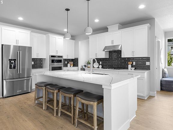 OPEN HOUSE EVERY FRIDAY-SUNDAY 12-5p! With exceptional curb appeal, the stately 2887 plan boasts a wide, open layout with wall of sunny windows on the main floor. The chef’s kitchen is focused around the large center island and provides abundant cabinetry and space as well as high end finishes such as quartz countertops, designer backsplashes and KitchenAid appliances. A full bedroom and bath on the main floor make the ideal guest room or private office space. The spacious covered back patio is the perfect place to entertain friends and family. Retreat to your primary bedroom and spa bath for ultimate relaxation. A versatile loft space is sure to grow with your family as your needs change - the space makes the optimal movie room, game room or study area. The upstairs is completed by an oversize laundry room and 3 additional bedrooms, all with walk in closets. The 3-car side by side garage provides the parking and storage space you have been looking for. Schedule a private showing today!