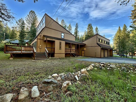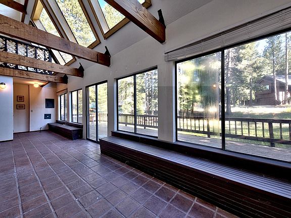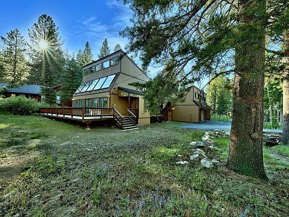 Opportunity awaits you in this 4-bedroom, 3-bath residence offering a haven of natural light an open floor plan. As you enter, you'll be greeted by a bright atmosphere, thanks to the abundance of well-placed windows and thoughtful design. The kitchen is functional with a bar open to the dining area backing to the living area. Slider to the well designed sunroom. For car enthusiasts or those seeking ample storage space, the spacious 4-car + garage is a dream come true. Above the garage, a versatile room awaits, perfect for a home office, guest quarters, or a private retreat. The level driveway provides convenient parking for multiple vehicles, ensuring ease and accessibility for you and your guests. Additionally, the passive solar design of the home maximizes energy efficiency, reducing your environmental footprint and saving on utility costs. Unwind and soak in the serene beauty of the surroundings on the large deck, perfect for outdoor entertaining or simply enjoying the crisp mountain air. One bedroom on the main level plus a full hall bath. The primary suite plus 2 additional bedrooms and hall bath upstairs. Primary bathroom featuring hydronic baseboard heating, allowing you to indulge in comfort and warmth during the colder months. With its excellent location, you'll enjoy easy access to all that Lower Tahoe Donner has to offer, including outdoor recreational activities, stunning natural landscapes, and a vibrant community. Embrace the idyllic mountain lifestyle while relishing the convenience of nearby amenities.
