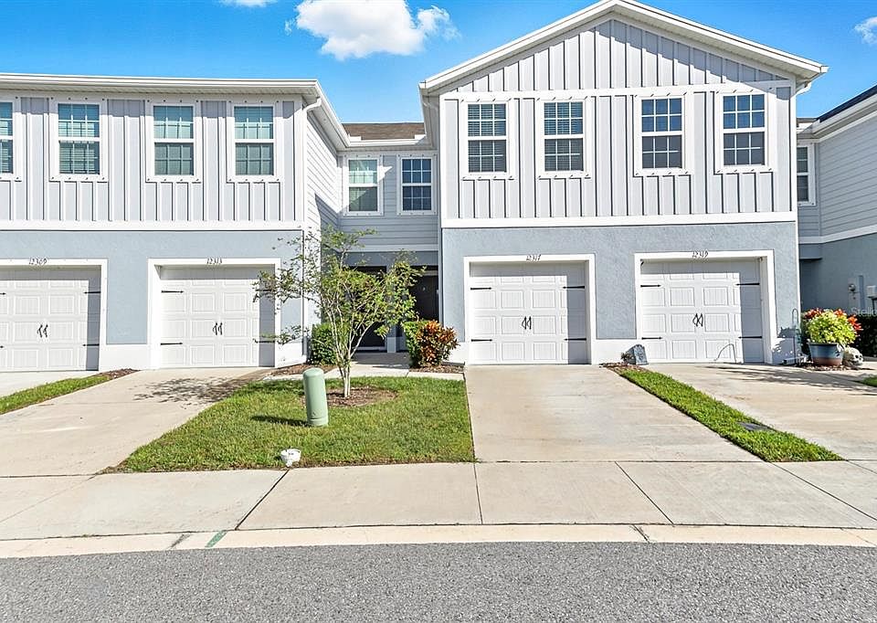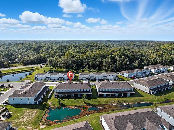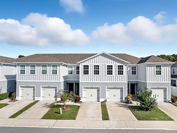 One or more photo(s) has been virtually staged. Why wait to build in a NO CDD community when you can own this like-new 2023 Ryan Homes Flamingo model with 3 bedrooms, 2.5 baths, over 1,400 sq. ft., and a 1-car garage on a beautiful pond-view homesite! This townhome is truly move-in ready and better than new! Enjoy a low-maintenance lifestyle in the sought-after Bear Creek community, offering the perfect blend of style, comfort, and convenience. The open-concept floor plan features a spacious great room that flows seamlessly into the modern kitchen, making it ideal for entertaining. The kitchen boasts a large center island, quartz countertops, modern aesthetic and design, stainless steel appliances, and ceramic tile flooring throughout the main level. The mainfloor also features a half bathroom. Upstairs, the primary suite offers a peaceful retreat with a large walk-in closet and a private ensuite bath featuring dual sinks and quartz countertops. Two additional bedrooms, a full bathroom, and convenient upstairs laundry complete the second floor. Step outside to your screened-in covered patio, perfect for relaxing or hosting a barbecue while enjoying the tranquil pond view. Additional upgrades include LED lighting, hurricane shutters, and neutral finishes throughout. The low monthly HOA of only $186 includes cable, high-speed internet, roof and paint reserves, lawn care, landscaping, and irrigation on the front and sides. No CDD fees and no flood insurance required! Bear Creek Townhomes is ideally located just minutes from the Ridge Road Extension with easy access to the Veterans Expressway, making your commute to Tampa a breeze. Close to beaches, shopping, dining, and parks! This home truly has it all. Don't wait! Schedule your showing today! This like-new townhome will not last! Subject to 3rd party (court) approval.