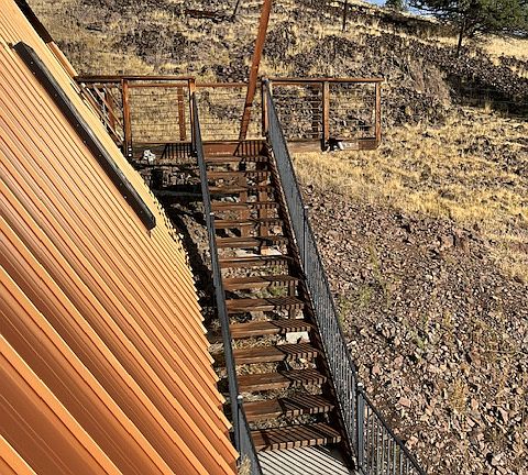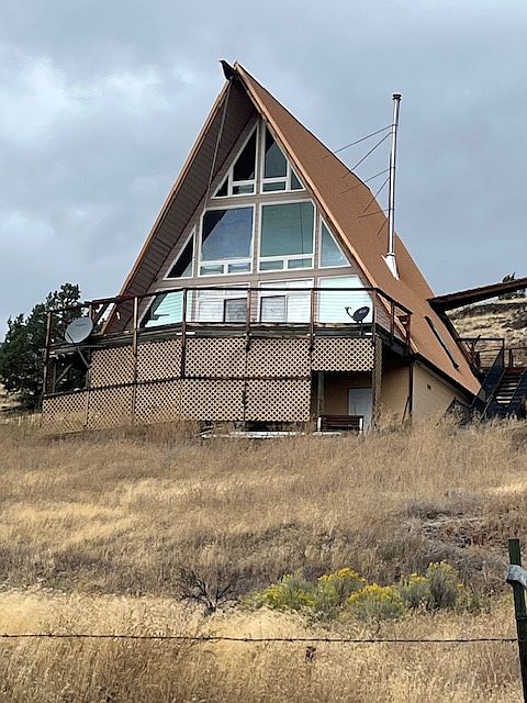 Dynamic space to live in, fabulous views and large deck over 2 car carport. Must like stairs, this is not for the weak. Tall A-frame house. Lots of living space, split level open plan, dining nook off kitchen seats 6. Fully furnished, (needs another couch) but you are welcome to move things, add, take decor out by putting things in closets, etc. Stacker W/D laundry/pantry off kitchen. Ideal renter is bachelor or young couple getting started that doesn't have much "stuff", just enjoy what's there for move in, then adapt over time. Very cool if you are a hunter you will love the animal heads. Gated, with a gravel driveway on 2 acres above road and 7 acres below separately fenced. Central hydronic heat run off LP gas water heater. Wood stove backup. Evap cooler for summer. Ceiling fans circulate to keep consistent temps. If you like normal average boring this is not for you!! Fun unique space to live in. Interior photos forthcoming.