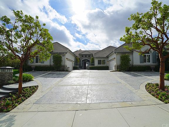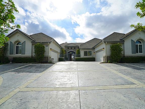Welcome to the exclusive Moorpark Country Club Estates. This pristine single-story home offers 4 bedrooms and 4.5 baths and sits on one of the best lots with 19,000 sqft+ perched over the 5th tee. As you walk through the rounded archway to the double front doors, you'll find peace and serenity inside. The gourmet chef kitchen boasts granite counters, stainless appliances, built- in fridge, double oven, walk in pantry, large island and breakfast bar. The adjacent family room has custom shelves. The enormous master bedroom suite with a phenomenal walk-in closet, bathroom with marble counters, double sink, jetted soaking tub and shower with glass block. There are three entrances to the private backyard through the Living room, family room and master bathroom with fireplaces in 2 rooms. Custom shutters throughout the home even in the two separate 2 car garages and a water softening system. The backyard is an entertainers dream with panoramic views that seem to go on forever... golf course, mountains and city lights. This spectacular home is the one you've been waiting for. Welcome Home!