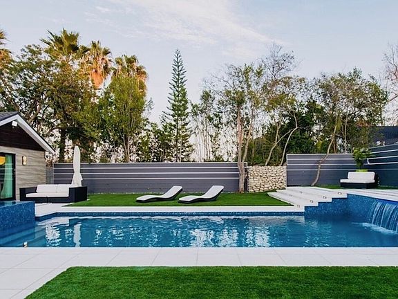 Beyond the gated driveway, resides a custom built, 4,200 sqft modern home located in the heart of Brentwood. Furnished by Modani, grand skylights that compliment the vaulted ceilings, lead to the bi-fold glass walls that effortlessly unite the living space to the expansive exterior. The serene backyard includes, heated pool/spa, outdoor shower, kitchen and cabana, loaded with all entertainment necessities. Sitting on approx. 14,113 sqft lot, this impeccable home offers 4 master suit bedrooms with bi-fold glass walls, 5 bathrooms, sophisticated open gourmet kitchen and last but not least, its unique lighting throughout the interior and exterior. This home is nothing short of lavish, brought to life by renown architect and designer.