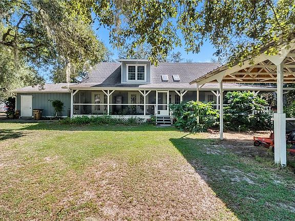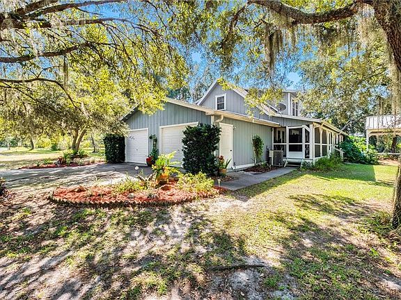 This property is amazing. It's private. It's on wooded acreage. It's in a central geographical location. This means you can jump in the plane and hop down to the Keys, The Bahamas, or head up north. Your choice! It has a 5300 sq/ft airplane hangar with RV storage and work shop. Over 300 ft of concrete taxiway connects your hangar to Osborn Field. New owner will inherit runway privileges as well. Do you have to own an airplane or be a pilot to live here? Of course not! Think of all the possibilities and business opportunity of having a building like this! It is supplied with electricity and work stations as well. You"ll also love the floor plan of the actual home! This 1871 sq/ft home has 4 bedrooms - two up and two down, including the Master which has an upgraded bathroom. Each bedroom is on the other side of the house from the other for maximum privacy. Each upstairs bedroom is very spacious and would be perfect for guest, or a craft room. There is a cozy loft that looks out onto your property and airfield. Each downstairs bedroom has it's own French door to the back covered porch which wraps around the house. It even has good sized office. The kitchen has a breakfast bar and is adjacent to a dining area that easily fits a table for 6 or more and hutch or buffet. You wont believe how efficient the floor plan is. Plus, skylights just up the mood and brightness while reducing your electric bill. This property is unique and a must see. This is the quintessential country charmer.