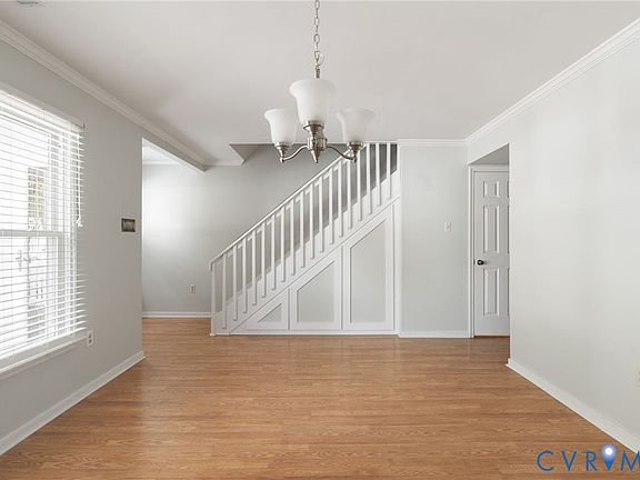 Charm and modern updates come together at 12319 Sir James Ct, a thoughtfully improved 3-bedroom, 1.5-bath townhouse in a prime Henrico location. Step inside to find durable laminate flooring that shines under the natural light streaming through the newer windows (2016). The dining room is a bright and inviting space, complete with clever built-in storage tucked beneath the staircase—seamlessly designed to blend with the home’s style while adding functionality. The renovated kitchen (2022) features sleek cabinetry, stainless steel appliances—including a wall oven and flat-top stove—and a stylish backsplash. A convenient pass-through window connects the kitchen to the spacious living room, where you can relax by the wood-burning fireplace or entertain with easy access to the fully fenced backyard. Upstairs, the primary suite offers both a walk-in and reach-in closet, while two additional bedrooms provide flexible space for family, guests, a home office, or hobbies. The updated hall bath (2022) showcases a step-in shower with sliding glass doors and a raised double vanity. A new washer and dryer (2020) are also located on this floor for everyday convenience. Additional highlights include a newer heat pump (2016) and a new awning (2021). Ideally located just minutes from shopping, dining, and entertainment at Short Pump Town Center, this home truly combines comfort, function, and convenience. Don’t wait—this move-in ready home won’t last long. Schedule your showing today!