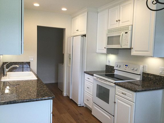 Enjoy this amazing, quiet, Goldenwest neighborhood with beautiful mountain views and easy walking distance to dining and shopping in downtown Ojai. This 2 bedroom, 1 bath home features a custom kitchen with granite countertops, electric stove, side by side refrigerator, dishwasher and microwave. A separate laundry room with washer, dryer, storage cabinets with adjacent linen closet. Both bedrooms have large mirrored closets. One bedroom has sliding door access to a covered patio deck. Attached garage w/ automatic opener. Central air/heat. Weekly gardener, water softening service and water utility provided. No smoking, no pets. Super clean and ready to move in. One year lease. 3200/mo. 3500 security deposit. Available July 15.