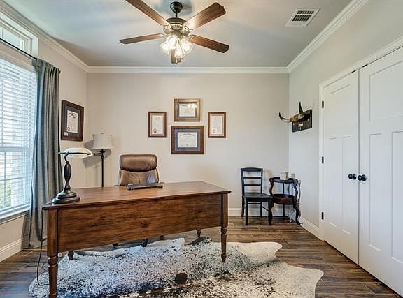 Serene, country, friendly neighborhood home offers modern casual floor plan, high end finishes, home office, play or media room, outdoor entertaining, easy access to highways, retail and dining. Grand living room shows off fireplace between book cases, open to elegantly appointed kitchen, stately island, abundant counter, cabinet space and pantry with 2nd fridge, coffee bar, utility closet. Dining offers seating for 8 or more. Split bedroom design, master provides double shower, soaking tub and extra size closet. Secondary bedrooms with their own baths. Outdoor living and dining areas for year round entertaining, pool bath nearby and open patio overlooking pool, playground area. Garden shed for more storage.