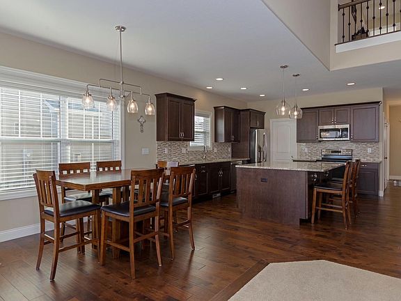 Custom built 5 bed/3.5 bath home located in The Vineyards neighborhood. Open floor plan with family room with vaulted ceiling and gas fireplace. Outstanding kitchen features hardwood floors, tile backsplash, upgraded cabinetry, stainless steel appliances, granite countertops, huge island and large walk-in pantry. Flex room is currently being used as an office but could be a dining room or formal living room. Main floor laundry room and powder room/half bath. 1st floor master bedroom with trey ceiling. Master bath with large tiled shower, dual sink vanity and large walk-in closet. on the second level are 3 add'l bedrooms including 2 with walk-in closets, another full bath with dual sinks and loft area. Finished basement with 5th bedroom, a full bath and spacious family room that measures 30x17. Covered back patio overlooks yard with irrigation system! 3 car garage. Walking distance to Unit 5 schools - Grove Elementary and Normal Community High School. Enjoy fishing in the subdivision lake!
