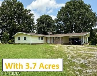 COMING SOON1 SHOWINGS BEGIN FRIDAY JULY 18TH. Yadkin County with 3 bedroom 2 baths just outside town limits of Yadkinville with 3.7 Acres, which includes an additional building lot. Discover the potential of this 1960's Modern MidCentury Architecture including large horizontal windows, vaulted ceilings in living room with stone fireplace, real solid wood paneling. Home has insulated windows. Roof was replaced in 2024. This unrestricted location with NO HOA is tucked way into a beautiful farming area. The land offers plenty of space for a large garden , or small horse pasture. Location is provides easy access to 421 and is just 15 minutes to I-77. Just 3.5 miles to down town Yadkinville, 15 minutes to Jonesville and 20 minutes to Historic Downtown Elkin. The mobile home on property has no power and has just been used for storage.