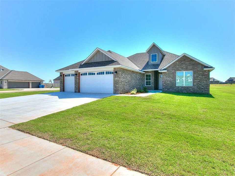This beautiful home sits on a very large corner lot in the new and beautiful Deer Ridge Run addition. Open the door to a beautiful cathedral ceiling that covers a spacious open floor plan. This home boasts 4 bedrooms as well as an office that could double as a fifth bedroom. Intricate woodwork throughout the entire home, with an amazing backsplash that shines in the background. The master bedroom is large with a tray ceiling and crown molding to accentuate it. Double vanities, walk-in shower, large tub; plenty to look at in the master bath. Then walk into the stunning master closet with room for everything you need. One bedroom with dual closet space and a built-in desk and shelving. The next bedroom has a mini walk-in closet as well. The shared bathroom has a very large vanity and striking tile and granite. The third bedroom has its own bathroom with vanity and tub/shower as well as its own walk-in closet. Don't miss out on this amazing home in the coveted Tuttle School District! Shop Buildings are allowed with HOA approval! Builder is also offering an $8000 allowance!