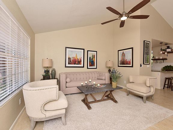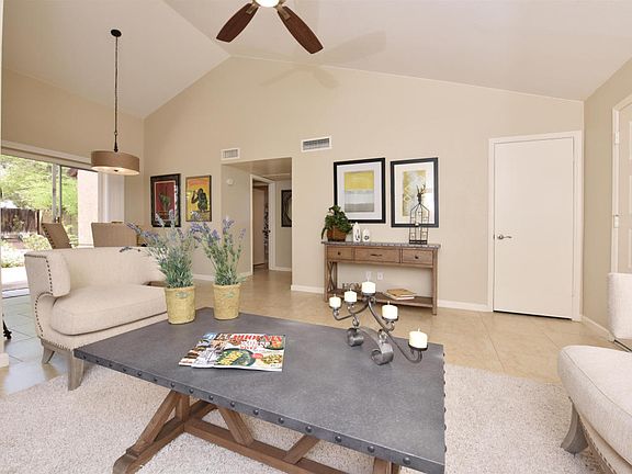 UPDATED in Country Place Continental built single level home on oversized lot (7,544 SF) offers 2 bedrooms, 2 bathrooms w/mountain views. Designed and remodeled by Sandra Alexander Interiors, this home reflects the special details only shown by an Interior Designer. NEW granite countertops throughout. Fresh NEW custom-mixed two-tone interior paint. 20'' x 20'' neutral-palette custom tile flooring in just the right places. Upgraded Shaw carpet with R2X stain and crush resistant technology in rooms. Kitchen has GE stainless steel appliances, open farmhouse shelving and hand-blown glass pendant lights over custom sized bar seating. Upgraded designer vanity lights, dining light, and remote controlled fans. Window seat in front bedroom and lots of storage space throughout home. Mirrored... Mirrored closet doors in both bedrooms. Beautiful spa-like decor in both master shower and guest tub surround. Upgraded 8" widespread lavatory faucets and designer rectangle sinks. NEW dual flush, single button, high-efficiency toilets. All new stainless design-inspired door hardware. 2" custom-sized window blinds. Custom surface garage floor. 100% fully automated landscape in front and back yards. SUPER backyard has extended patio areas, beautiful garden & pathways with N/S exposure. Super clean and move-in ready! Plus NO HOA fees!!