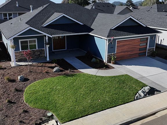Newly completed construction! Seller will consider a credit to buy down the interest rate for a qualified buyer. Beautiful new construction in Seacrest Estates, a new premier subdivision in Brookings. This 1,748 sq ft single-level home features a generous open-concept plan and a split-bedroom layout for added privacy. Nine-foot ceilings run throughout, while the living area features a vaulted ceiling that creates a warm, spacious, and inviting space. The chef's kitchen is appointed with quartz countertops, custom cabinetry, a gas range, THOR stainless high-end appliances, an oversized pantry, and a microwave drawer, ready for weeknight dinners and weekend entertaining. The living room centers on a gas fireplace and opens to a covered back patio, allowing for seamless indoor-outdoor living. The primary suite feels like a private retreat, complete with high ceilings, a soaking tub, a walk-in tiled shower, a dual-sink quartz vanity, and a large walk-in closet featuring custom built-ins. Guest bedrooms are thoughtfully placed on the opposite side of the home, providing quiet and functionality. Additional highlights include a covered front porch, easy access entry, and a peaceful interior location within Seacrest Estates. Minutes to Harris Beach State Park, local beaches, dining, and downtown amenities. New, fresh, and move-in-ready coastal living. Newly fenced yard. Ask to see the Matterport Professional 3D tour, which covers the inside and outside of the home, and also ask for the floor plan.