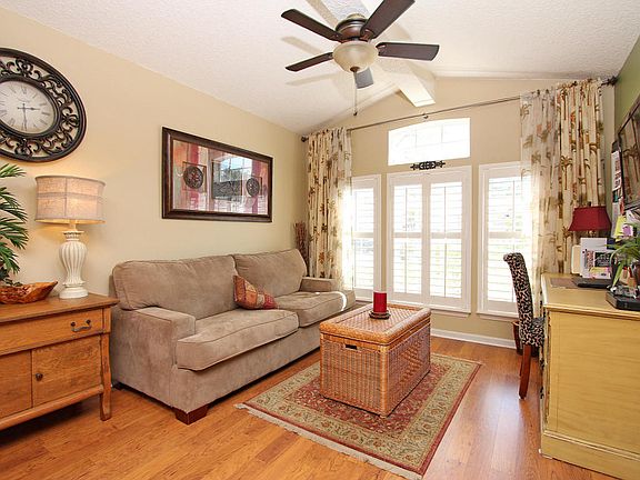 GORGEOUS 4/2 HOME IN THE GATED COMMUNITY OF PLANTATION GROVE IN JULINGTON CREEK PLANTATION. NEW EPOXY COATED EVAPORATOR COIL - JAN 2019 CYPRESS PRIVACY FENCE - MAY 2017. DOOR HARDWARE UPDATED TO BRUSHED NICKEL HANDLES. LIVING AREAS/BEDROOMS HAVE BEEN UPDATED TO LIGHT FRENCH GREY COLOR. LIGHT FIXTURES/FANS IN LIVING AREAS UPDATED TO NICKEL. NEW GARAGE DOOR OPENERS -AUGUST 2016 OUTLETS HAVE BEEN UPDATED TO TAMPER RESISTANT FOR CHILD SAFETY. NEW WATER SOFTENER - JUL 2017. BASE CABINET PULL OUT SHELVING ADDED AUGUST 2017 SPACIOUS KITCHEN FEATURES RECESSED LIGHTING, 42'' CABINETS, STAINLESS APPLIANCES, TILE FLOORS, PANTRY CLOSET AND BREAKFAST BAR, ALL OPEN TO THE BEAUTIFUL FAMILY ROOM COMPLETE WITH CORNER, WOOD BURNING FIREPLACE, AND FRENCH DOORS OPENING TO THE BEAUTIFUL FLORIDA ROOM WITH CEILING FAN AND PATIO PAVERS. LARGE MASTER BEDROOM WITH WALK IN CALIFORNIA CLOSET, DUAL SINK VANITY AND LINEN CLOSET. UPGRADED 2ND BATH. 3 CAR GARAGE WITH UTILITY SINK, WATER SOFTNER, ATTIC PULL DOWN STAIRS, SPRINKLER SYSTEM, AND SEPERATE IRRIGATION METER.