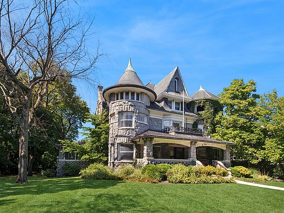 The "Castle on Ridge" - A rare opportunity to buy this Magnificent and Iconic mansion for the first time in nearly 50 years. De-signed by noted architect Stephen A. Jennings, this house is beautifully positioned on nearly an Acre with a full Coach house, expansive yards, and a 4 car garage. The Grand Entry welcomes you to this 18 room residence with 11 bedrooms, 8 bathrooms, 3 staircases, updated custom kitchen with sitting room, formal dining room, huge family room and a third floor Ballroom! The house boasts large windows, detailed millwork, and high ceilings with natural light flooding the home. A spectacular staircase three stories high soars above original Stained Glass Windows and a Pipe Organ fa-cade! This Grand and Lofty staircase is the focal point of the house. With over 8,600 square feet of living space this home provides endless possibilities and flexibility! A rented 2nd floor two bedroom apartment in the Coach house is a great income bonus.