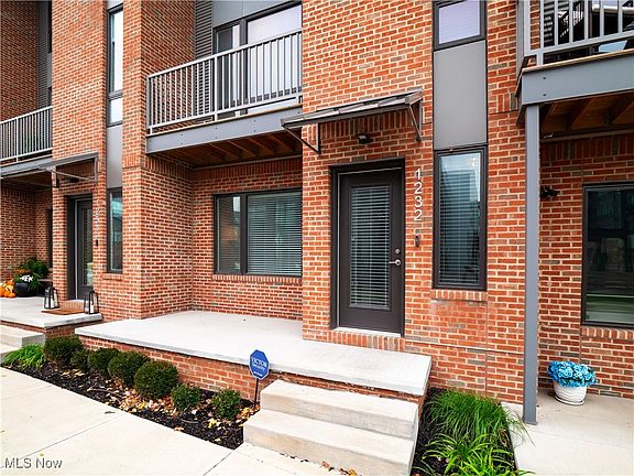 Welcome home to 1232 W 73rd Street located in Battery Park's Park Place development. Newly built in 2023, this stylish residence shows like a model home and is tax abated through 2038... a spectacular cost savings!!!. Fabulous features include 3 outdoor spaces (front porch, second floor balcony, rooftop deck), a 2-car garage that was resurfaced (the added Tesla charger can stay), attractive finishes throughout the home, added stairway lighting on all staircases. The first floor consists of the entryway, bonus room (perfect as an office or workout room), and extra storage. Upstairs, you'll find the dining area and living room with recessed lighting, hard surface flooring, large windows, and balcony. All windows are dressed with blinds. The pristine kitchen (barely used!!) offers a stainless GE appliance package, beautiful quartz countertops & cabinetry, soft close drawers, elegant light pendants, under counter lighting. A half bath and pantry complete this level. The third floor has both bedrooms, two full baths, and laundry with Speed Queen washer & dryer. The primary suite boasts a fantastic walk-in closet and ensuite bath with double sinks and a spacious tiled walk-in shower with frameless glass door. Perfectly located down the hallway are the second full bath with tub and guest bedroom. The 4th floor landing is plumbed for a wet bar and leads out to your wonderful rooftop deck (w/ outlets & faucet) that is an excellent space for entertaining, relaxing, and in a prime position for watching the air show and fireworks! Battery Park is a thriving lakeside neighborhood next to Edgewater Park, seconds to Downtown Cleveland, and in close proximity to popular Detroit Shoreway destinations.