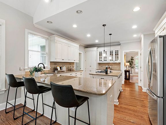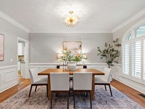 Situated in the sought-after North Chartwell community of Wake Forest, this French-inspired transitional home blends timeless design with modern function across 4,356 sq ft. Set on 1.66 acres, the property offers rare privacy, mature hardwoods, and a landscaped rear yard ideal for outdoor living. Inside, the main level features a bright open plan with hardwood flooring, high ceilings, and an elegant foyer framed by formal dining and living areas. A gas-fireplace family room connects seamlessly to the deck and screened porch overlooking the wooded lot. The kitchen includes a gas cooktop, double ovens, stainless-steel appliances, granite counters, breakfast area, and wine cooler. The first-floor primary suite offers tray ceilings, dual closets, soaking tub, and separate shower. The walk-out basement provides a second living or recreation space with a full bath, bar area, and covered patio access — ideal for home theater, gym, or guest quarters. Upper-level bedrooms include generous closets and flex space for office or media use. Additional highlights include a Juliet balcony, custom millwork, and abundant natural light throughout. Upgrades and systems include well + septic utilities, multi-zone HVAC, gas water heater, and attached 2-car garage with EV-ready outlet capability. Built in 2000, this home has been maintained for longevity and energy efficiency while preserving its original craftsmanship. Outdoor living spaces are designed for relaxation and entertainment — covered front porch, composite deck, and lower patio facing west for evening light and sunset views. The 1.66-acre parcel offers space for a garden, pool, or future outdoor kitchen expansion. Located just 10 minutes to downtown Wake Forest's restaurants and shops, 15 minutes to Falls Lake Recreation Area, 20 minutes to North Hills Raleigh, and 25 minutes to RDU International Airport. Nearby destinations include Stewart's Bistro (1.2 mi), Publix and Harris Teeter groceries (2.5 mi), and E. Carroll Joyner Park (2.7 mi) with walking and bike trails. Neighborhood amenities include quiet cul-de-sac streets, mature landscaping, and low annual HOA dues. A 3D tour and video walkthrough are available online for virtual viewing. This home combines spacious design, flexible living areas, and proximity to Wake Forest landmarks — delivering comfort, privacy, and convenience in one exceptional address.