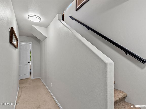 Great location in the heart of Eagle River w/easy commute to JBER. Southern sun in all 4 bedrooms. Vaulted ceilings, 2 full baths, gas fireplace, & private balcony. New boiler, delightlfully updated, clean and ready to move in. New tasteful lighting, new hardware and freshly painted. 2 beds up & 2 beds down with full bath on each level.
