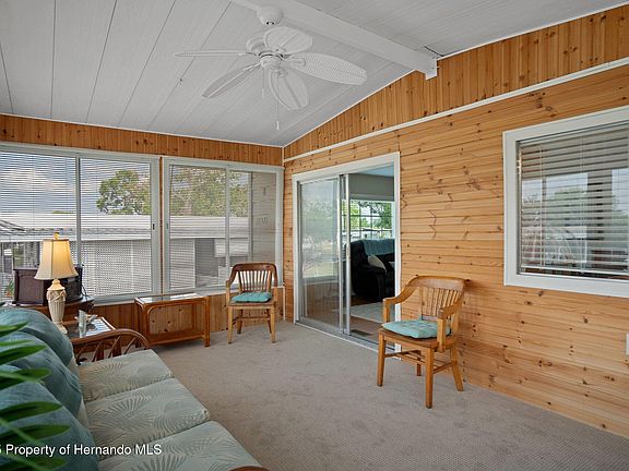 Check me out! Community pool! Fully furnished! Own the land! Well-maintained 2/2 Golf Course home on the #7 fairway. Low HOA! Building Area Total is 1,921 sq. ft. Additional enclosed office room! Newer kitchen cabinets and appliances. Brand new roof! Newer A/C unit! Additional enclosed Florida room! Laminate wood flooring and carpet. Master suite includes a double vanity and generous size walk-in shower. Utility room/workshop with overhead garage door for the golf cart! Many clubs, activities, tennis courts and shuffle board! Location location, location with restaurants, shopping, and medical facilities! Minutes from the Gulf and our crystal clear springs! Kayaking, dolphin and manatee!