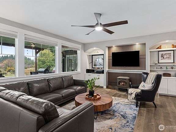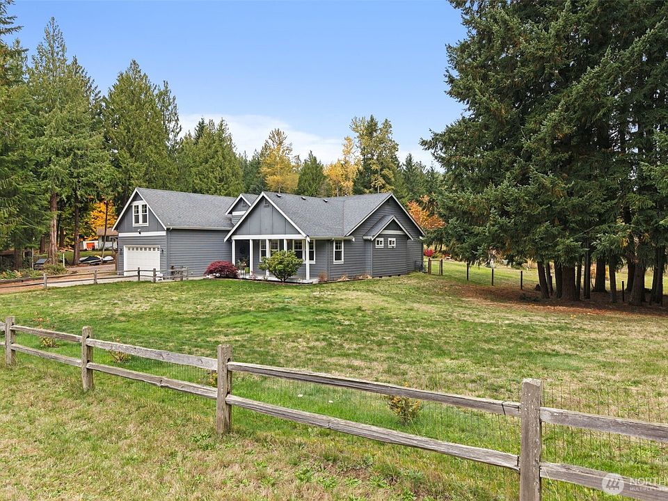 RARE Bonney Lake opportunity! | Nearly 1.5 acres of privacy & peaceful living just minutes from town | This beautifully updated home blends comfort & function w/ quartz counters, custom cabinetry & engineered hardwoods throughout | Enjoy an expansive covered deck overlooking fenced gardens, a 10x30 greenhouse, raised beds & lush pasture views | Every garden zone is sprinklered for ease, plus a 12x16 storage barn ready for tools or hobbies | Wake up to sunlit fields, unwind in the quiet of nature, & still reach Costco, shopping & dining in minutes — the best of both worlds: private country living close to everything | Bonney Lake-Sumner School District