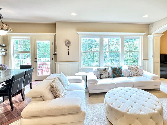 Multiple home office setupsSerene forest viewsSpa-like bathElegant archwaysDouble ovensWelcoming formal sitting roomDedicated game room