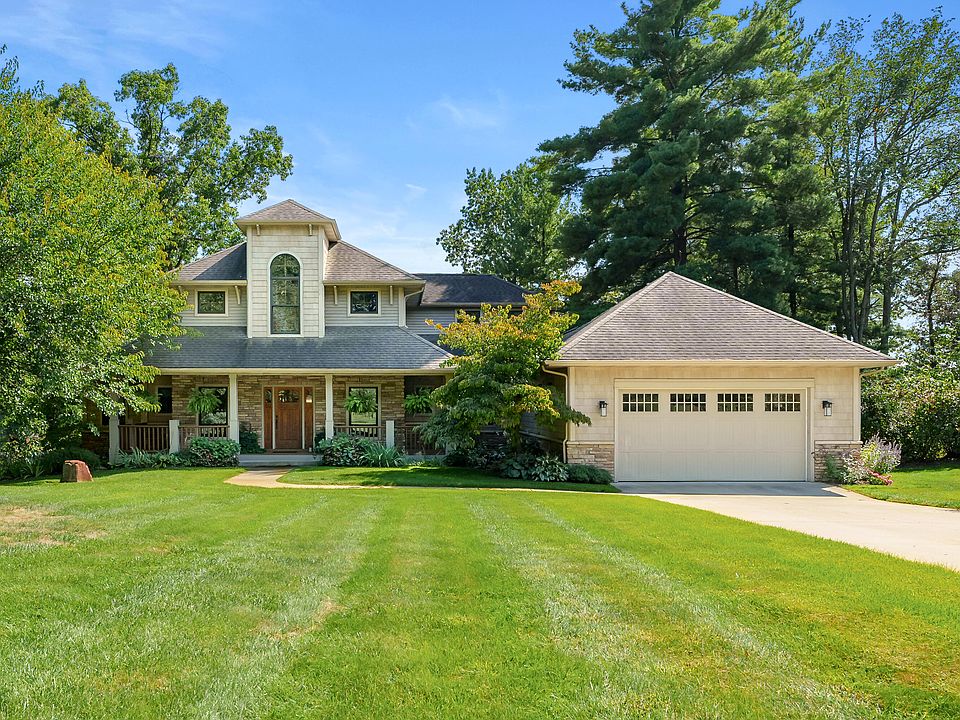 This PRIVATE WATERFRONT home is not to be missed! Custom construction and high-end materials are evident everywhere in this impeccably maintained home on quiet and serene Cranes Pond. 133 feet of frontage, mature trees and active wildlife, while offering maintenance free living! Truly a retreat, this former Parade of Homes star offers beautiful architectural details, roomy, private bedrooms with attached baths, and several light-filled gathering spaces. Large main floor primary suite with private deck, main floor laundry, updated kitchen, eating bars and adjacent sunroom w/ fireplace and water views! Spacious 2nd floor layout overlooks the living room with vaulted ceilings, stone fireplace and scraped wood floors. Bright Walkout basement has kitchenette, 5th bedroom,(more...) and opens to the waterfront deck and patio space. Updated mechanicals, whole-house generator, invisible fence and covered front porch. Private Waterfront for under $800k close to Gull Lake & 5 Golf Courses! This is a house to move for; A home, setting and location like this one is very special!