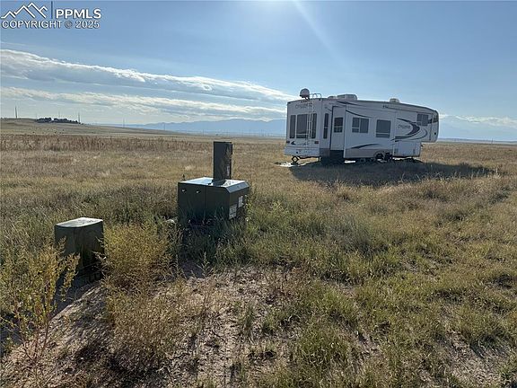 Beautiful 35 acres land, Level lot with view of Pikes Peak, just 15 minutes to Power Blvd, Peterson Air Force and Colorado Springs Airport, underground Utilities at the property. Land comes with a very nice and clean FREE fifth wheel Camper no included in the asking price.