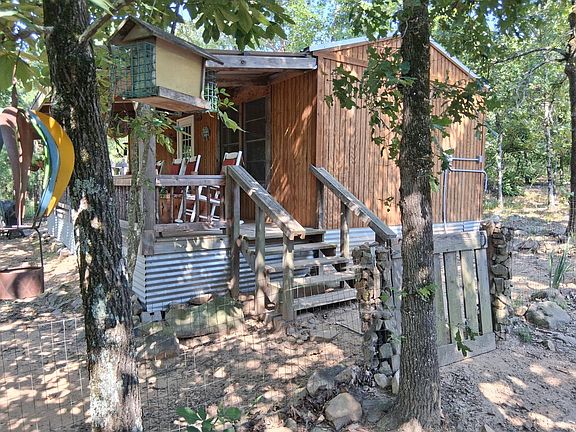 This 30 acres is off-grid with a 1700 watt solar system and back up generator. No need for rain catch, this home has a 125 ft well to furnish your water needs. 3 miles down WaterTower road and has 2 14x32 buildings, one is complete with 1 bed 1 bath and living room and kitchen. The other building just needs to be completed inside the way you like it. His and Her Conex containers for storage or workshop. The property has a complete chicken coop and above ground grow containers to start growing your vegetables. A road has been cut to your own private hunting area that has whitetail deer, bear and lots of wildlife.The property has a 350 gallon rain catch tank that can be hooked up to a gutter system to water your garden and animals,and a 350 gallon septic tank. The property has 3 build sites and 1 could have a view of Talihina Lake if a few trees were cut for the view. The well house is insulated and would is big enough to have a washer and dryer with electric and water already there. This is a rare find and the work has been done to give you a start in making it your dream property