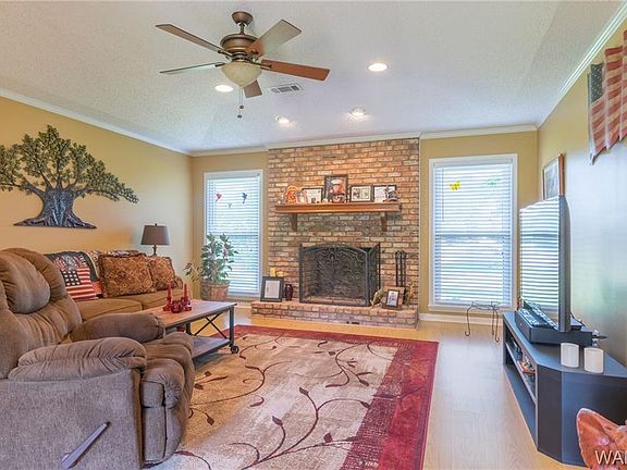 Completely updated Brick home offers 3 bedrooms, 2 baths and large Greatroom with masonry fireplace. Kitchen has been completely updated with tile countertops, new appliances and light fixtures. Roof has been replaced, Entire home has been painted and all new windows installed. Both baths have been updated and show great. New Freestanding clawfoot tub in hall bath adds a touch of nostalgia with the new finishes surrounding. Storage building has been purchased recently and has electricity installed. Spacious covered deck and new wooden fencing at back of lot allows privacy as well as great entertaining space. Very quiet neighborhood and zoned for Northside schools. Call today for a showing.