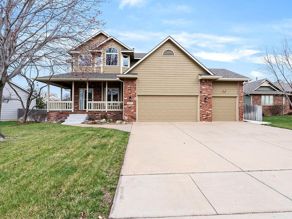 Welcome home to this extremely well-maintained 4bed/3.5bath/3car 2-story beauty on a quiet cul-de-sac in the popular Dwight D Eisenhower district. This home has been lovingly cared for, and is completely move-in-ready. As you arrive, you'll notice the crisp, clean curb appeal, accented by an extra wide driveway, partial-wrap around porch, and blooming mature trees. Inside, you'll discover one of the cleanest homes in west Wichita! You'll be impressed with the neutral color scheme, pristine hardwood flooring, and the amount of space available to spread out. A formal dining with window seat greets you to the right. Straight ahead, the living room offers large windows, and a wood burning fireplace flanked with storage cabinetry and display shelving. Flowing into the kitchen, you'll discover granite counter tops, tiled floor, reach-in pantry, a separate desk, and a full suite of stainless steel appliances. An attached breakfast nook opens up to the back yard and deck. Adjacent to the kitchen is the laundry room, which also affords entry to the spacious, partially-finished three car garage with insulated doors and multiple built-in storage areas. Finishing the main floor is an updated guest half bath with granite counter tops and newer ceramic tile floor. Upstairs is the master suite, which boasts a massive walk-in closet, coffered ceiling, and a fully-renovated bathroom with spa-like tiled shower, separate jacuzzi tub, newer ceramic floors, and dual vanities with granite counter tops. Two additional bedrooms on this level are spacious and bright, with views in opposite directions over the neighborhood. The full hall bath with shower/tub combo is clean and modern. The entirety of this floor, including the stairs, features newer carpet in excellent condition. In the view out basement is an expansive family/rec room with second fireplace, can lighting, and built-in entertainment center. Rounding out this level is a large fourth bedroom, office/workout room, full bath that is just as updated as those upstairs, mechanical room, and under-stairs storage area. Mechanical upgrades include a newer class IV 50-year roof and gutters (2019), 5 newer windows on the upper level, mostly new siding (2019), and newer back door (2017). Exterior amenities are plentiful, including a fully-fenced yard with irrigation well and sprinkler system, new extended curbed rear patio, garden/planting area, mature trees, and freshly-stained deck with awesome views. This house sits in a quiet area, walking distance to both the neighborhood pool and the lake. It's located near restaurants, groceries, and Kellogg, and has no special taxes! They don't come along in this condition very often. Come see us today before this one is gone! *See the promo video for additional views of this home.*